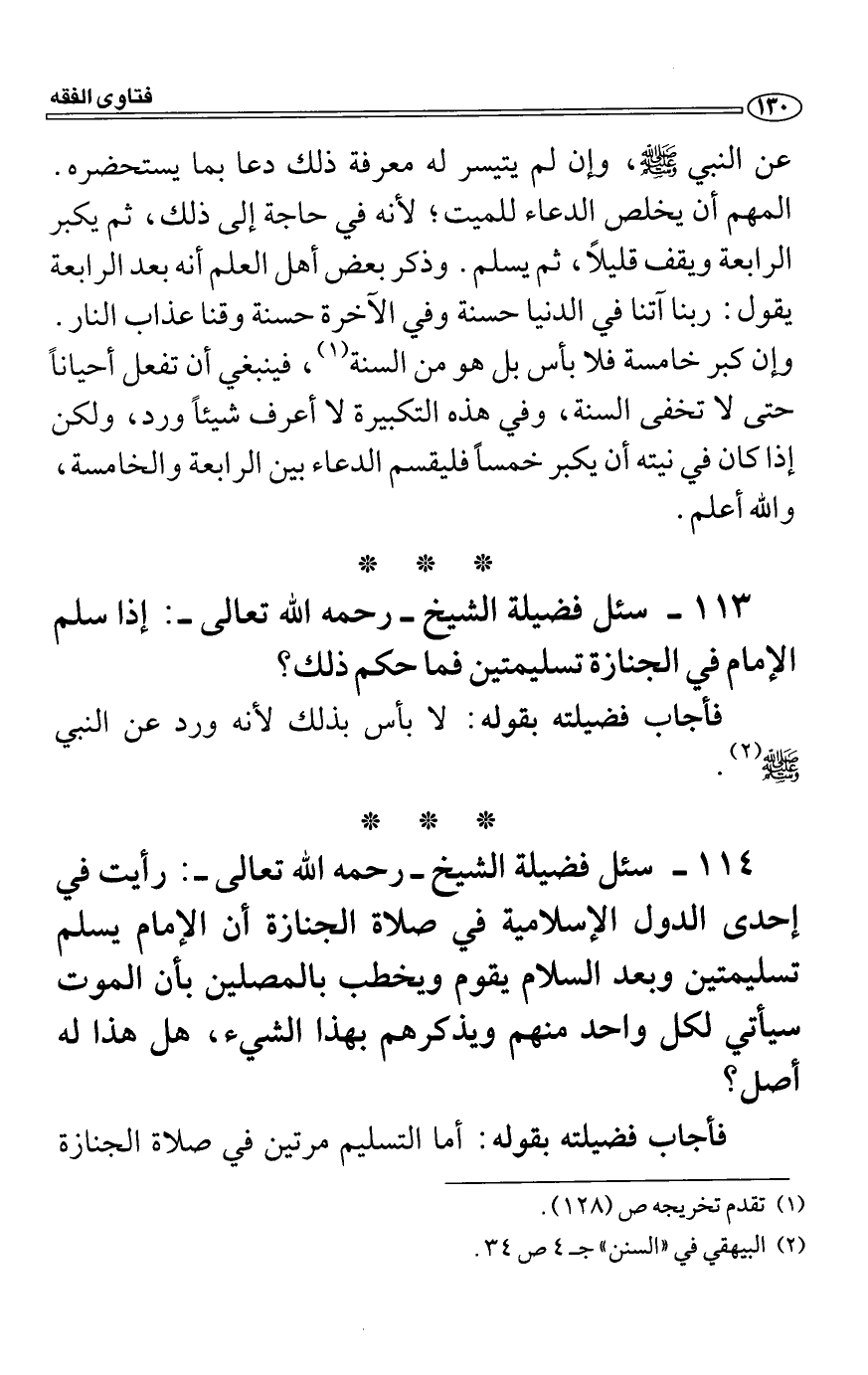 فأجاب فضيلته بقوله: أما التسليم مرتين في صلاة الجنازة