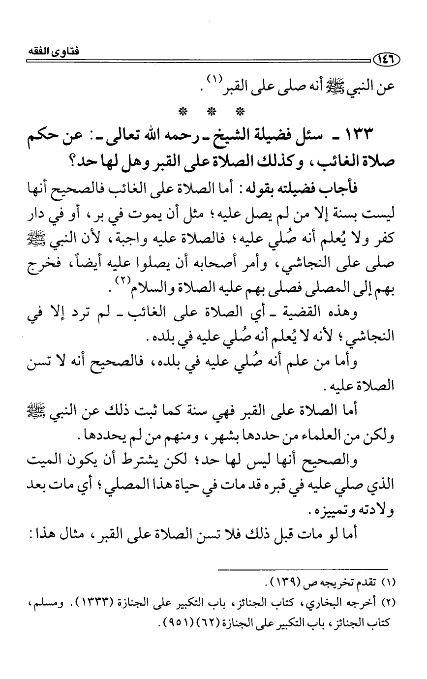 سئل فضيلة الشيخ رحمه الله تعالى: عن حكم صلاة الغائب، وكذلك الصلاة على القبر وهل لها حد؟