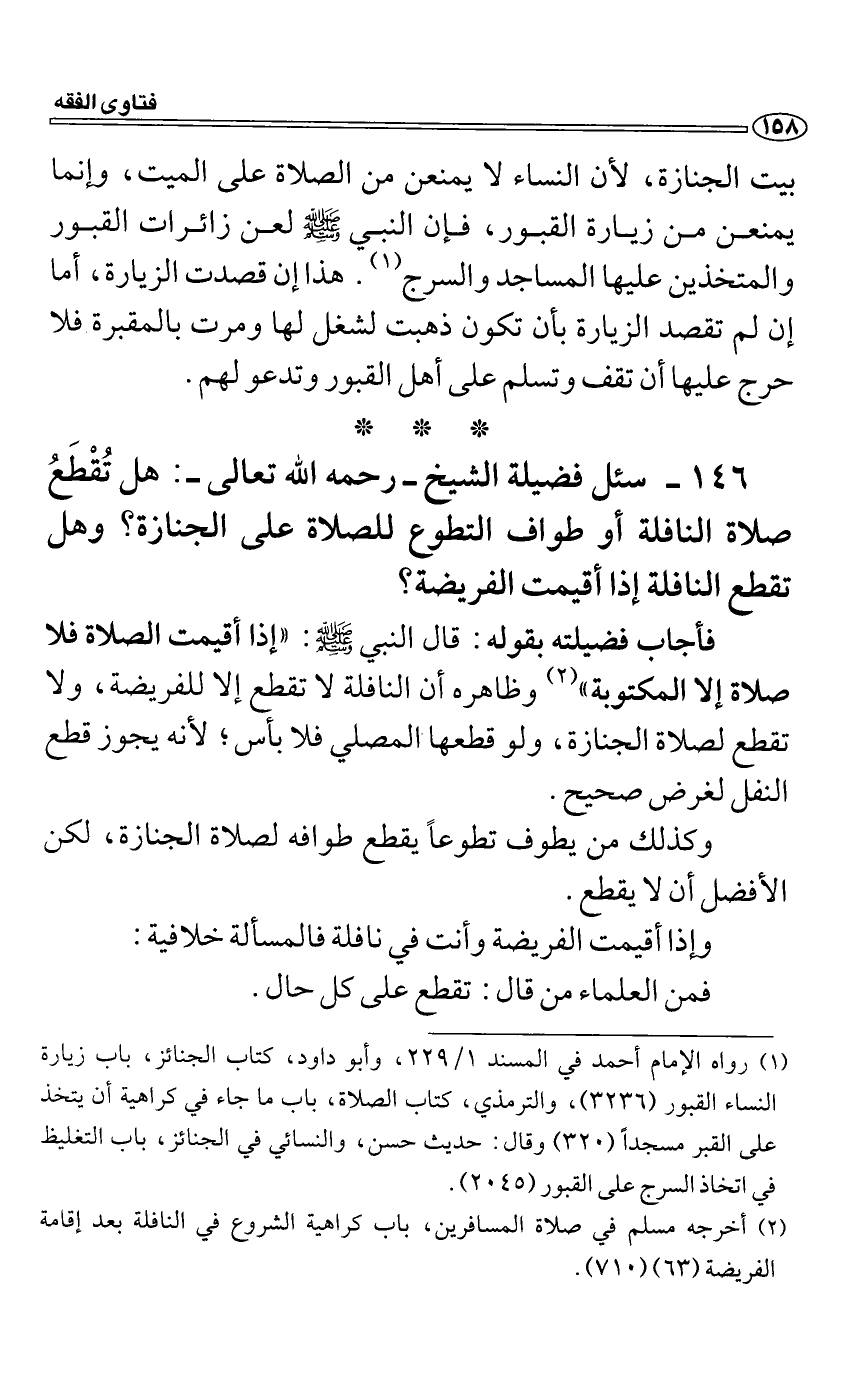 سئل فضيلة الشيخ رحمه الله تعالى: هل تُقْطَعُ صلاة النافلة أو طواف التطوع للصلاة على الجنازة؟ وهل تقطع النافلة إذا أقيمت الفريضة؟