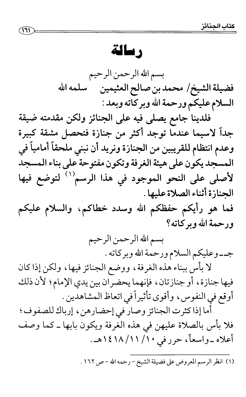 فلدينا جامع يصلى فيه على الجنائز ولكن مقدمته ضيقة جداً لاسيما عندما توجد أكثر من جنازة فتحصل مشقة كبيرة وعدم انتظام للقريبين من الجنازة ونريد أن نبني ملحقاً أمامياً في المسجد يكون على هيئة الغرفة وتكون مفتوحة على بناء المسجد لأصلى على النحو الموجود في هذا الرسم لتوضع فيها الجنازة أثناء الصلاة عليها.