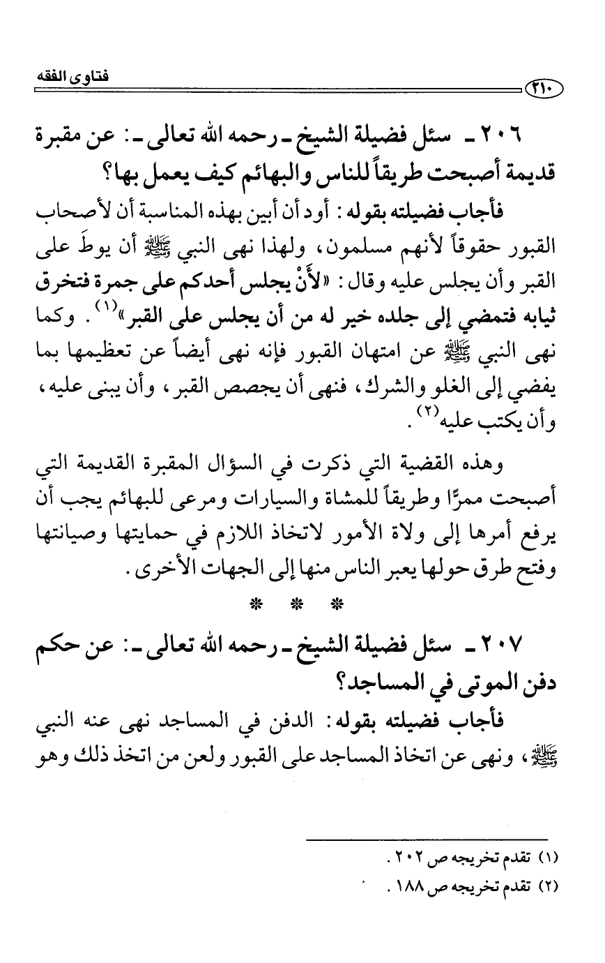 سئل فضيلة الشيخ رحمه الله تعالى: عن مقبرة قديمة أصبحت طريقاً للناس والبهائم كيف يعمل بها؟