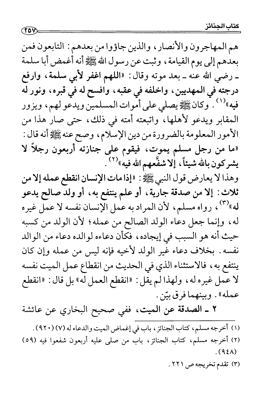 هم المهاجرون والأنصار، والذين جاؤوا من بعدهم: التابعون فمن بعدهم إلى يوم القيامة، وثبت عن رسول الله صَلَّى اللَّهُ عَلَيْهِ وَسَلَّمَ أنه أغمض أبا سلمة رضي الله عنه بعد موته وقال: "اللهم اغفر لأبي سلمة، وارفع درجته في المهديين، واخلفه في عقبه، وافسح له في قبره، ونور له فيه". وكان صَلَّى اللَّهُ عَلَيْهِ وَسَلَّمَ يصلي على أموات المسلمين ويدعو لهم، ويزور المقابر ويدعو لأهلها، واتبعته أمته في ذلك، حتى صار هذا من الأمور المعلومة بالضرورة من دين الإسلام، وصح عنه صَلَّى اللَّهُ عَلَيْهِ وَسَلَّمَ أنه قال: "ما من رجل مسلم يموت، فيقوم على جنازته أربعون رجلاً لا يشركون بالله شيئاً، إلا شفَّعهم الله فيه".