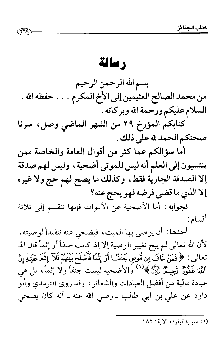 من محمد الصالح العثيمين إلى الأخ المكرم ... حفظه الله.