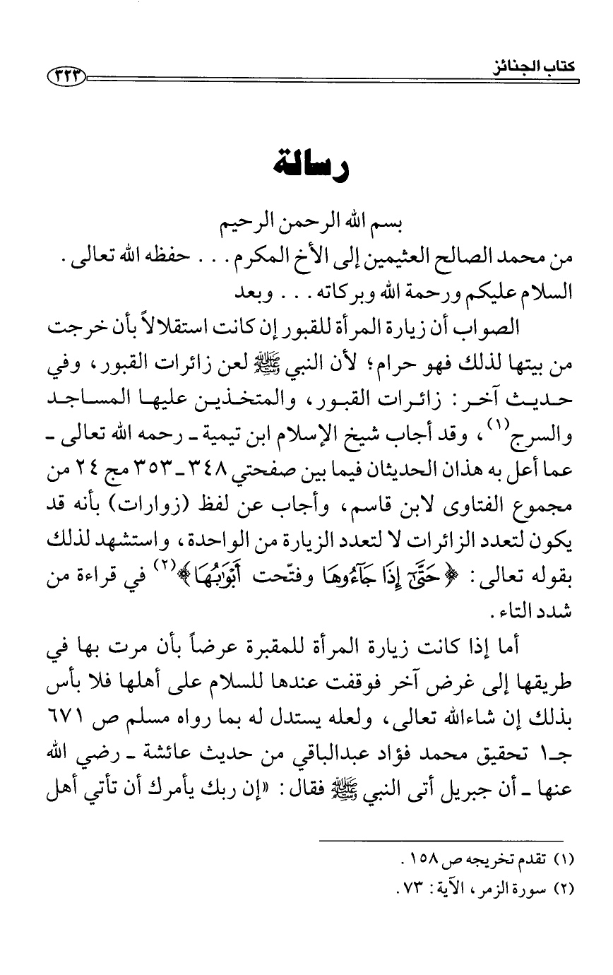 من محمد الصالح العثيمين إلى الأخ المكرم ... حفظه الله تعالى.