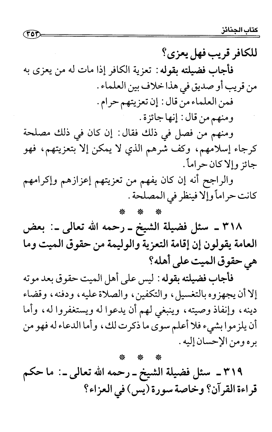 فأجاب فضيلته بقوله: تعزية الكافر إذا مات له من يعزى به من قريب أو صديق في هذا خلاف بين العلماء.