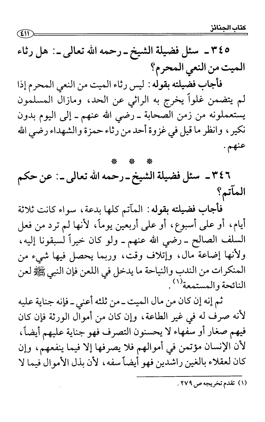 سئل فضيلة الشيخ رحمه الله تعالى: عن حكم المآتم؟