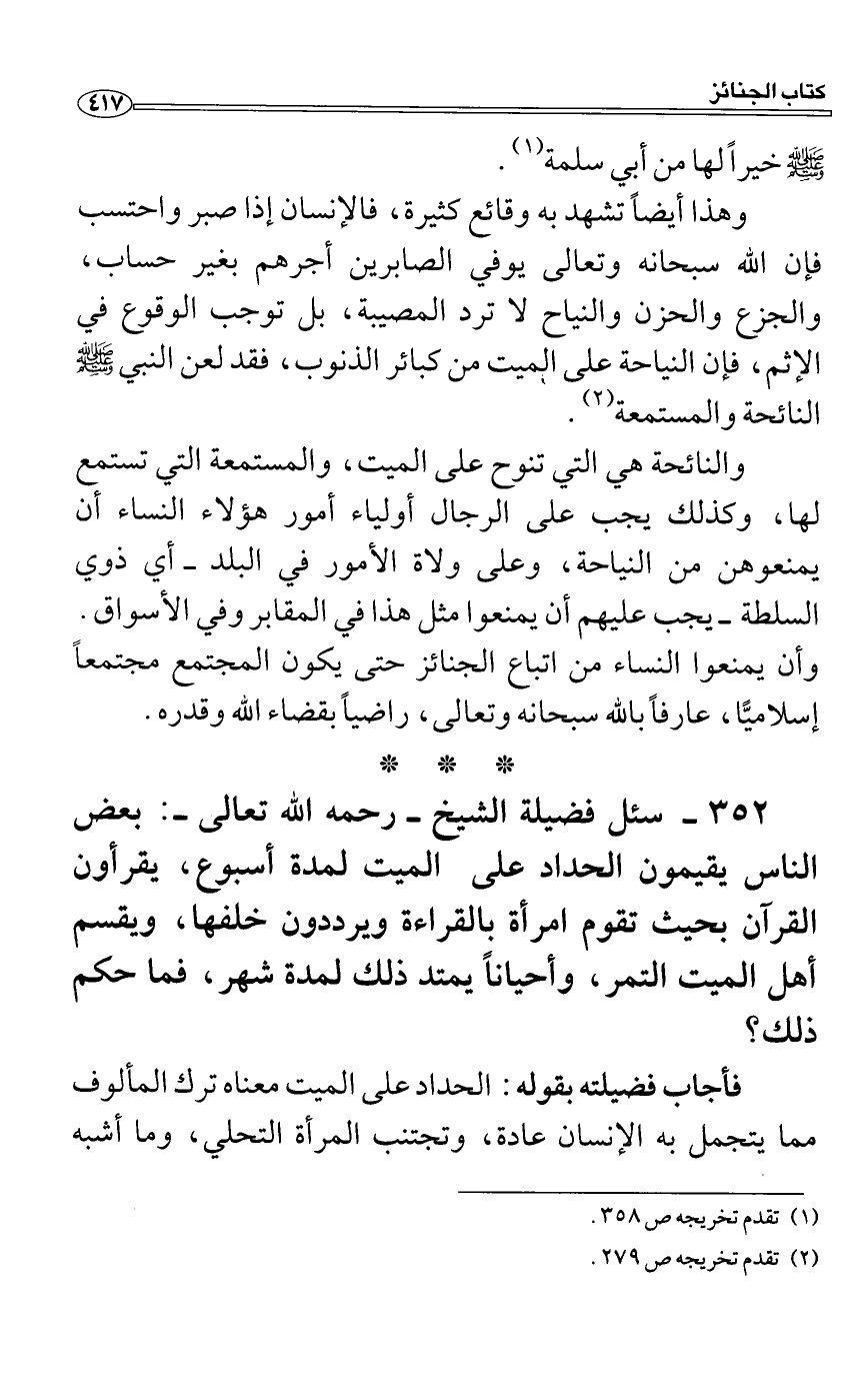 والنائحة هي التي تنوح على الميت، والمستمعة التي تستمع لها، وكذلك يجب على الرجال أولياء أمور هؤلاء النساء أن يمنعوهن من النياحة، وعلى ولاة الأمور في البلد أي ذوي السلطة يجب عليهم أن يمنعوا مثل هذا في المقابر وفي الأسواق. وأن يمنعوا النساء من اتباع الجنائز حتى يكون المجتمع مجتمعاً إسلاميًّا، عارفاً بالله سبحانه وتعالى، راضياً بقضاء الله وقدره.