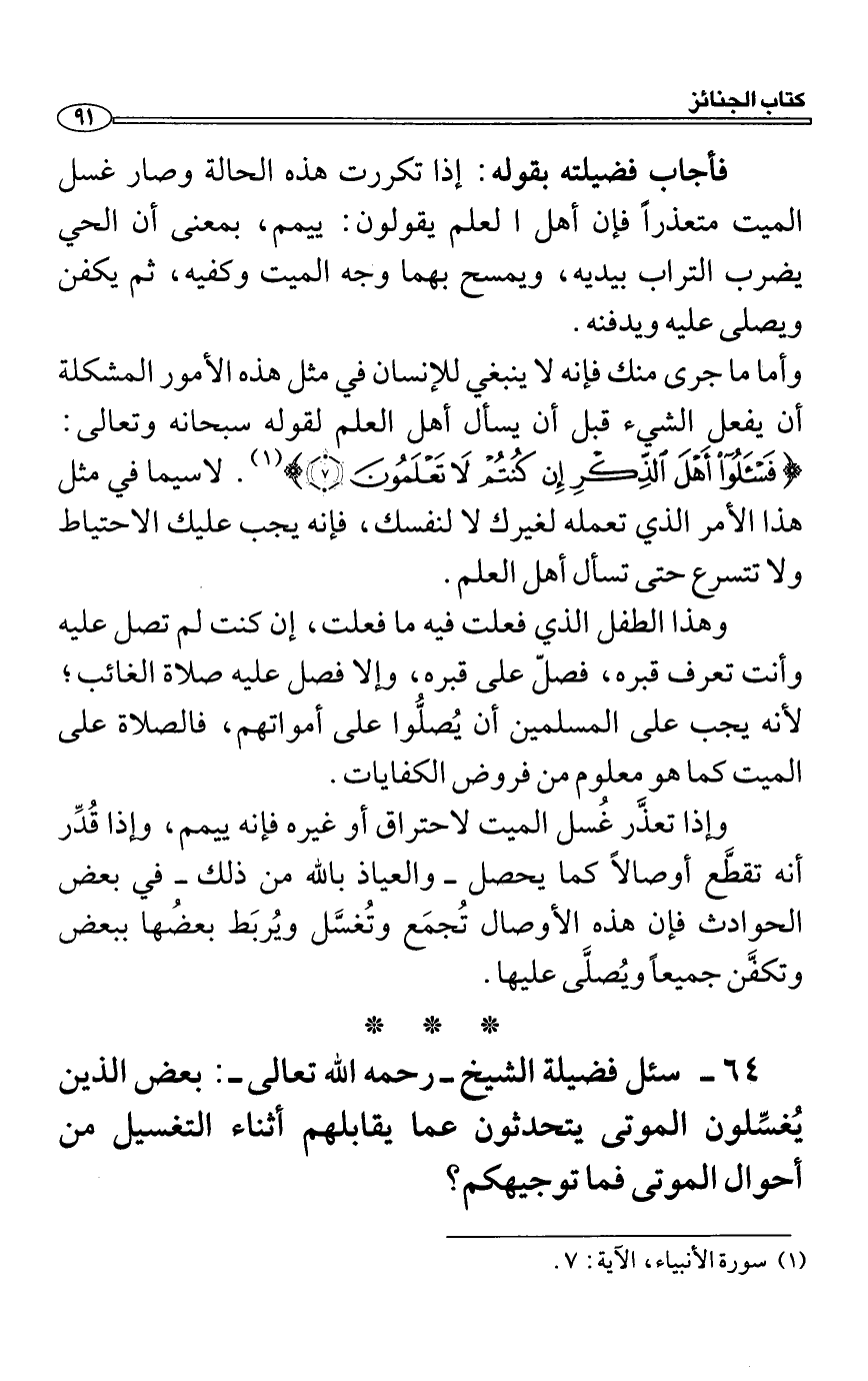 سئل فضيلة الشيخ رحمه الله تعالى: بعض الذين يُغسِّلون الموتى يتحدثون عما يقابلهم أثناء التغسيل من أحوال الموتى فما توجيهكم؟