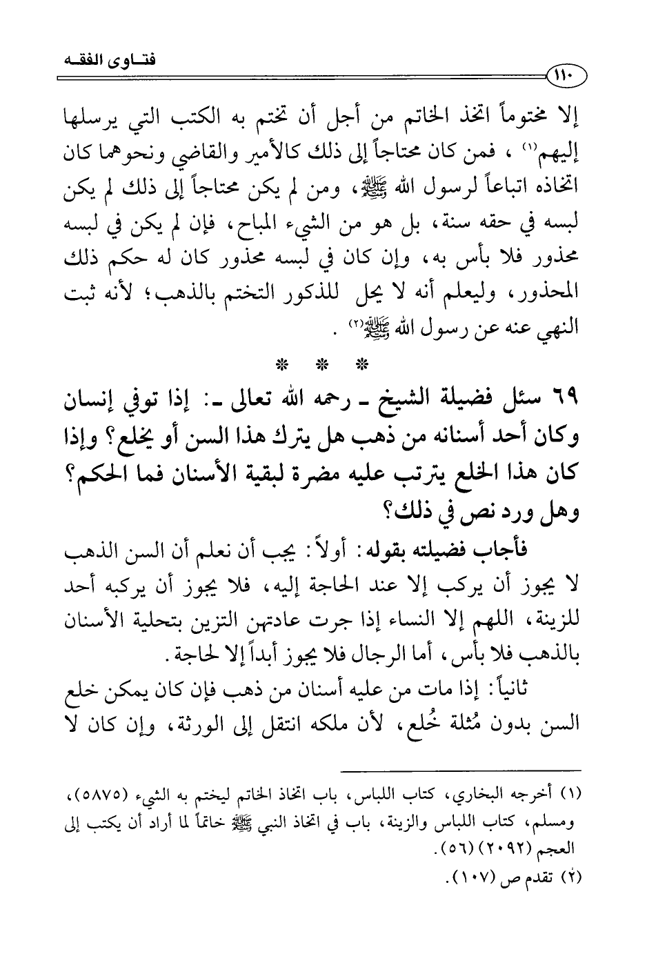 سئل فضيلة الشيخ - رحمه الله تعالى -: إذا توفي إنسان وكان أحد أسنانه من ذهب هل يترك هذا السن أو يخلع؟ وإذا كان هذا الخلع يترتب عليه مضرة لبقية الأسنان فما الحكم؟ وهل ورد نص في ذلك؟