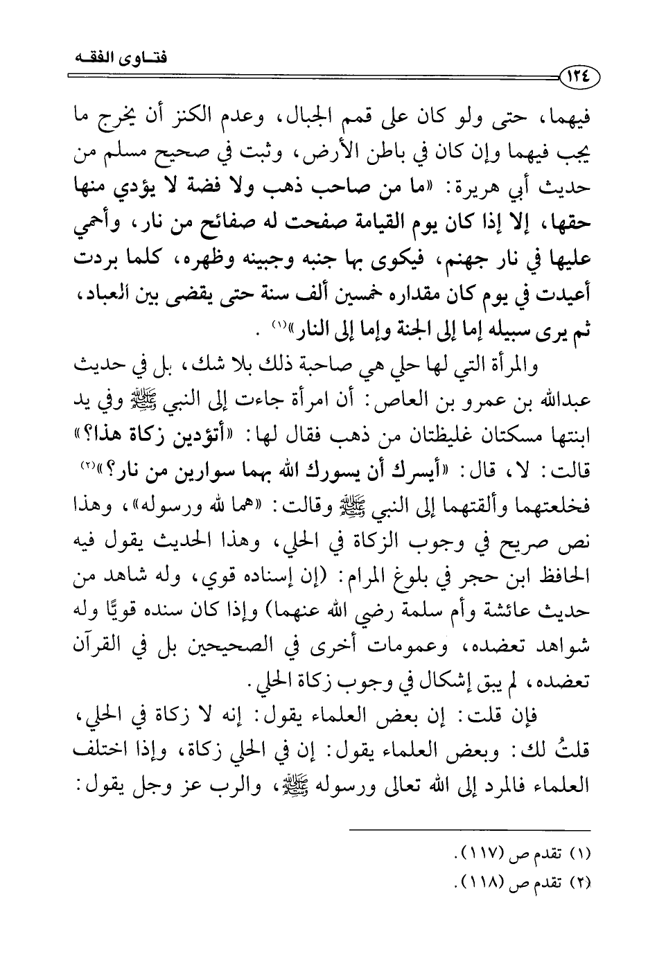 فإن قلت: إن بعض العلماء يقول: إنه لا زكاة في الحلي، قلتُ لك: وبعض العلماء يقول: إن في الحلي زكاة، وإذا اختلف العلماء فالمرد إلى الله تعالى ورسوله صَلَّى اللَّهُ عَلَيْهِ وَسَلَّمَ، والرب عز وجل يقول: {