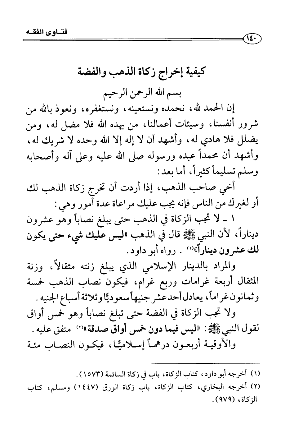 1 لا تجب الزكاة في الذهب حتى يبلغ نصاباً وهو عشرون ديناراً، لأن النبي صَلَّى اللَّهُ عَلَيْهِ وَسَلَّمَ قال في الذهب «ليس عليك شيء حتى يكون لك عشرون ديناراً» . رواه أبو داود.