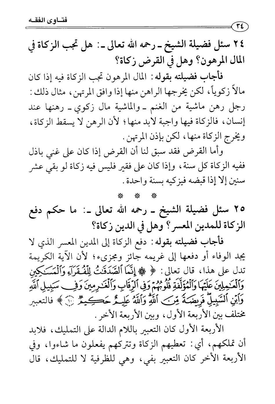 سئل فضيلة الشيخ - رحمه الله تعالى -: هل تجب الزكاة في المال المرهون؟ وهل في القرض زكاة؟