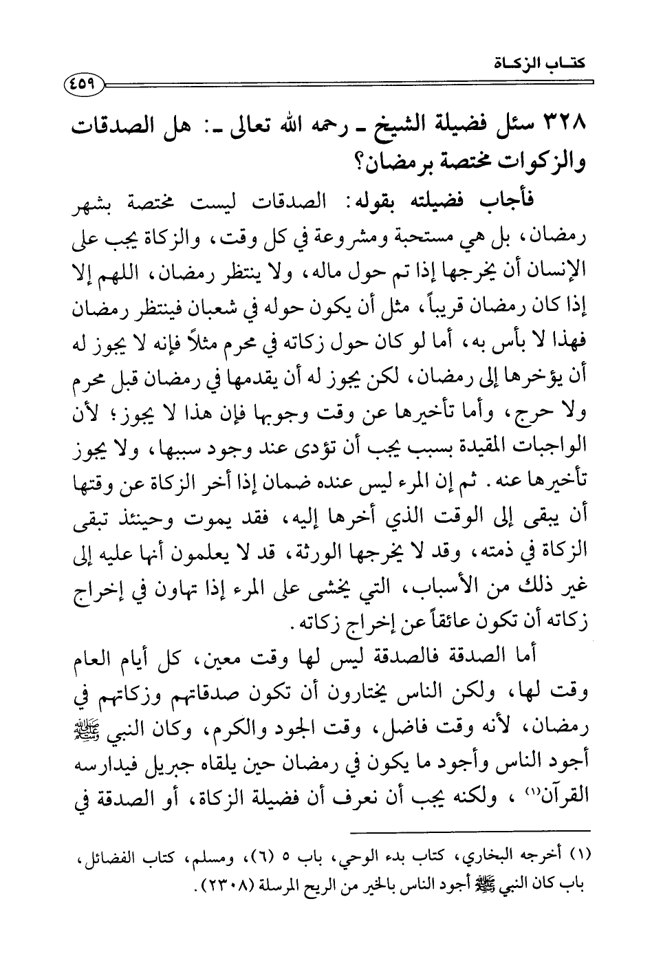 سئل فضيلة الشيخ - رحمه الله تعالى -: هل الصدقات والزكوات مختصة برمضان؟