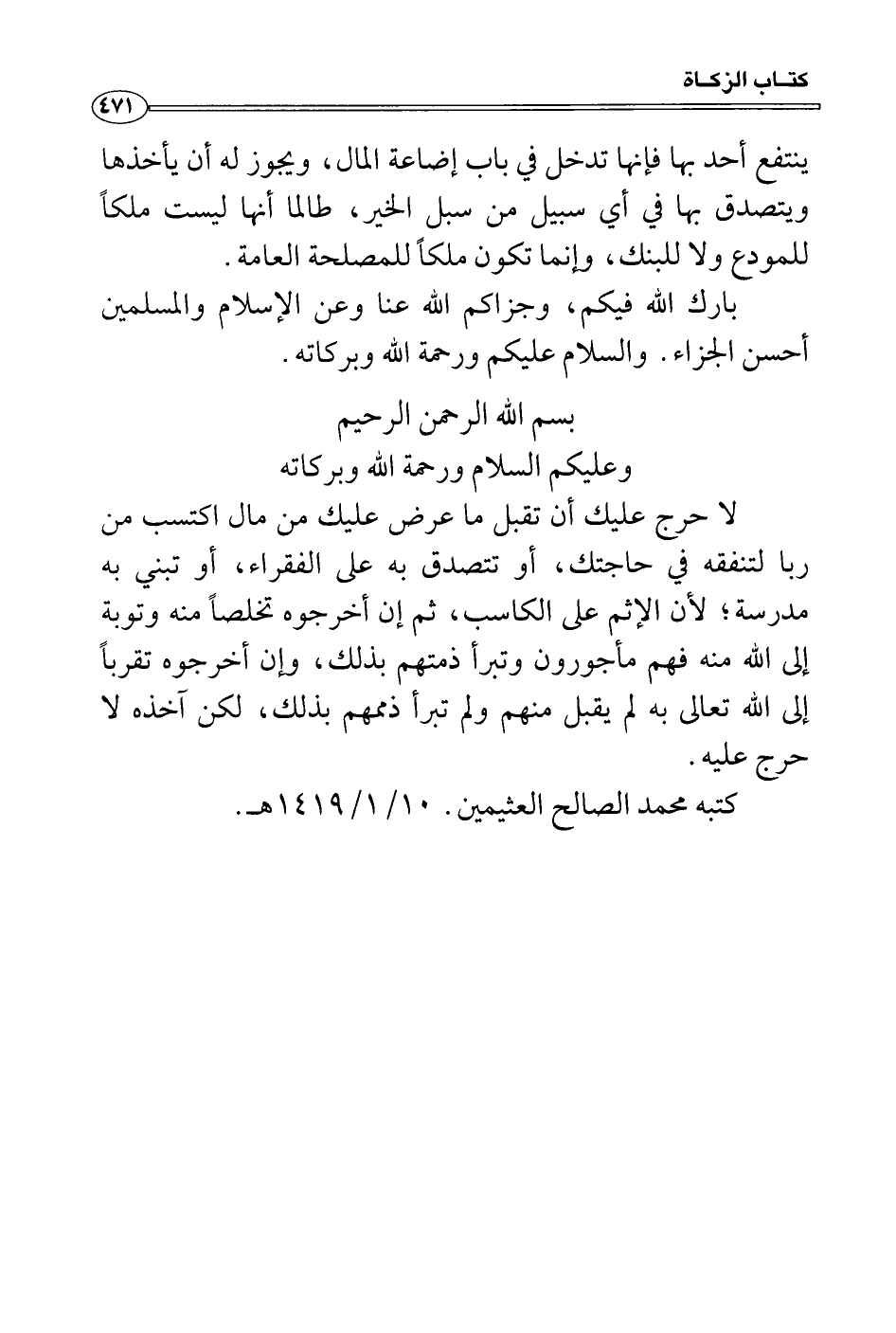 كتبه محمد الصالح العثيمين. 10/1/1419 هـ.