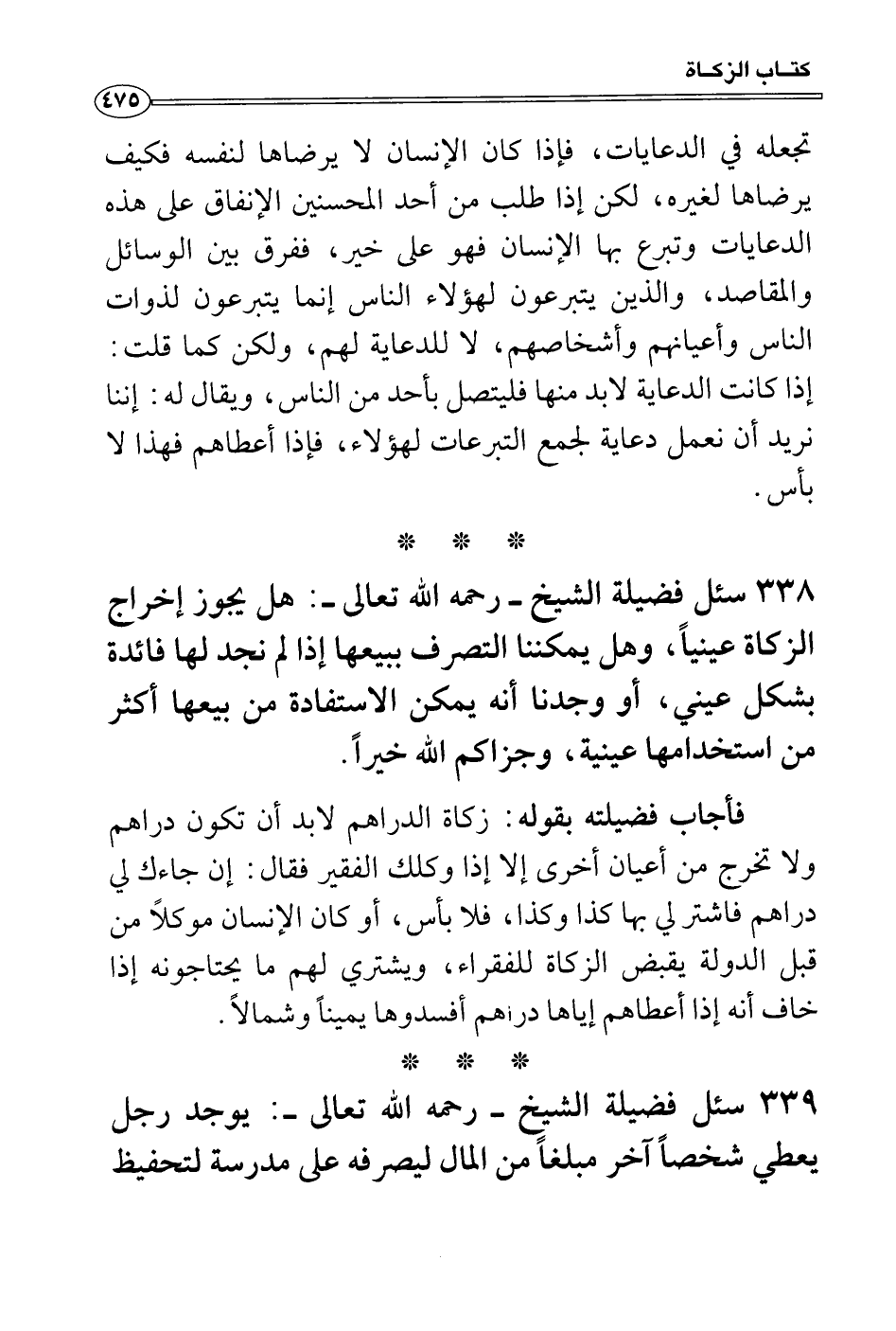 سئل فضيلة الشيخ - رحمه الله تعالى -: هل يجوز إخراج الزكاة عينياً، وهل يمكننا التصرف ببيعها إذا لم نجد لها فائدة بشكل عيني، أو وجدنا أنه يمكن الاستفادة من بيعها أكثر من استخدامها عينية، وجزاكم الله خيراً.