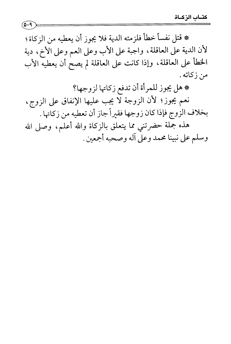 هذه جملة حضرتني مما يتعلق بالزكاة والله أعلم، وصلى الله وسلم على نبينا محمد وعلى آله وصحبه أجمعين.