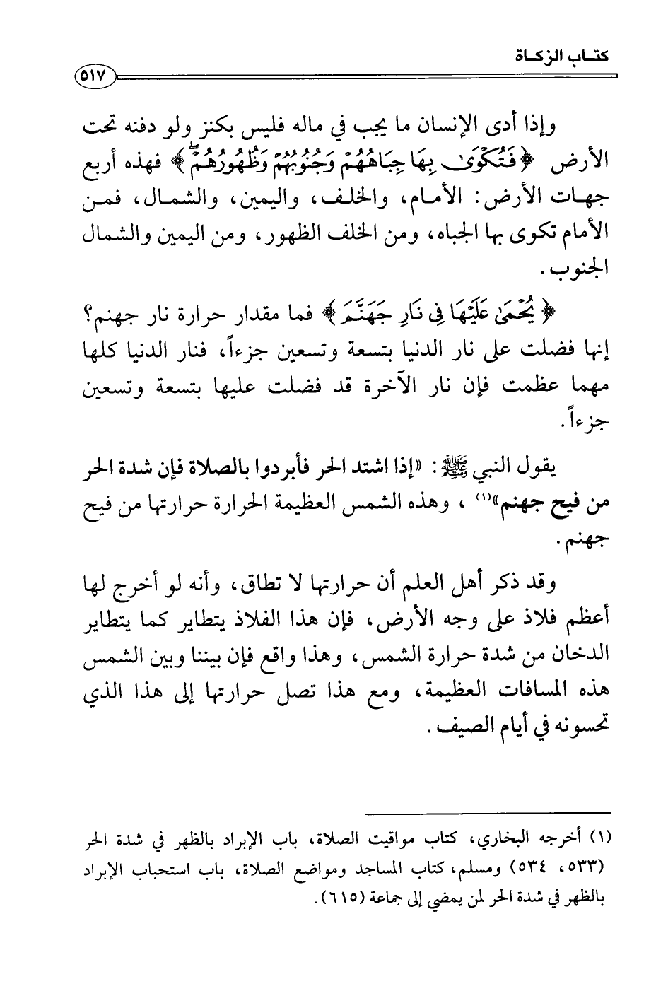 يقول النبي صَلَّى اللَّهُ عَلَيْهِ وَسَلَّمَ: «إذا اشتد الحر فأبردوا بالصلاة فإن شدة الحر من فيح جهنم» ، وهذه الشمس العظيمة الحرارة حرارتها من فيح جهنم.