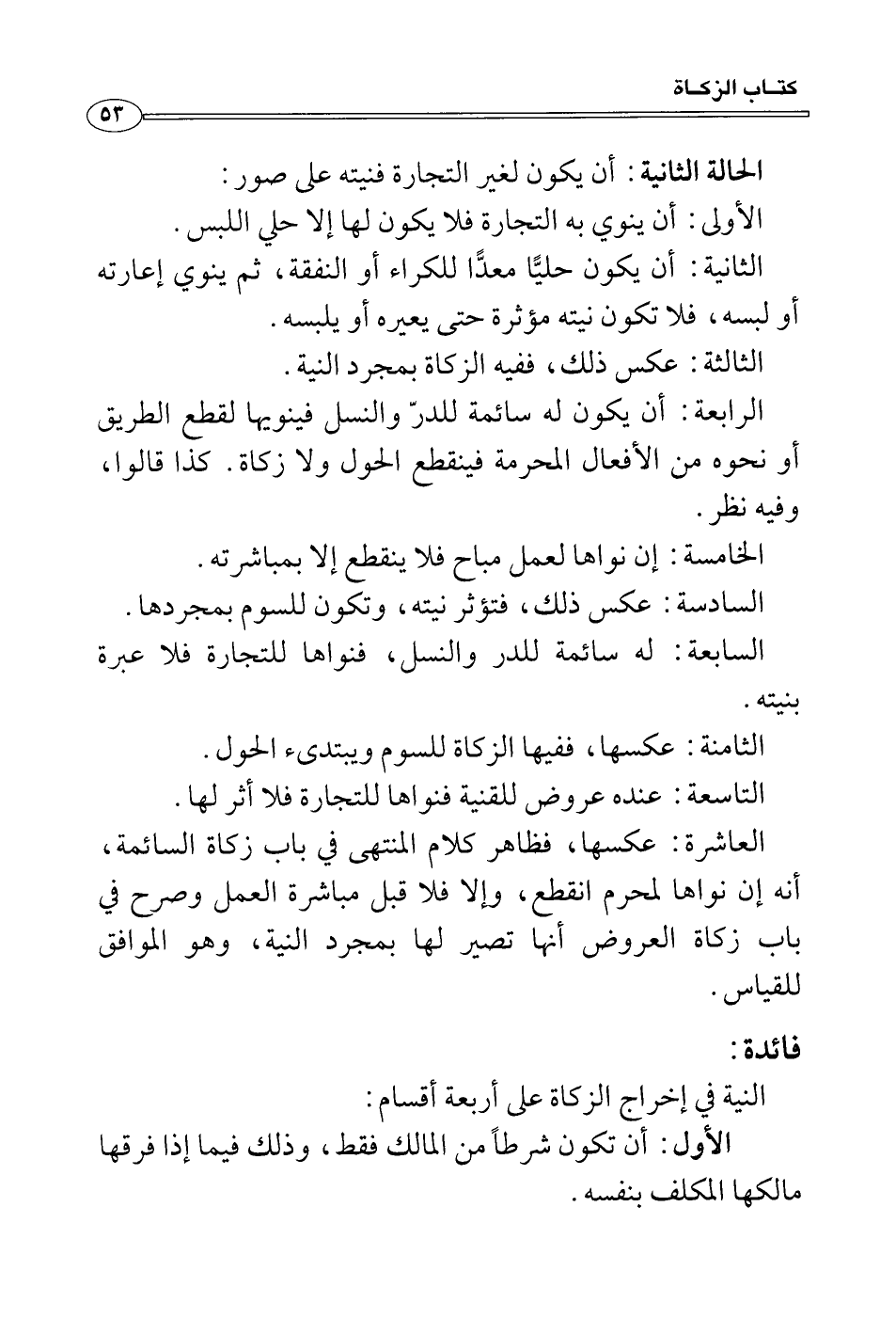 العاشرة: عكسها، فظاهر كلام المنتهى في باب زكاة السائمة، أنه إن نواها لمحرم انقطع، وإلا فلا قبل مباشرة العمل وصرح في باب زكاة العروض أنها تصير لها بمجرد النية، وهو الموافق للقياس.