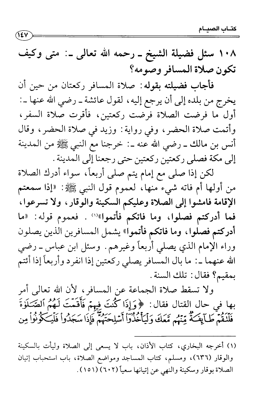 سئل فضيلة الشيخ - رحمه الله تعالى -: متى وكيف تكون صلاة المسافر وصومه؟