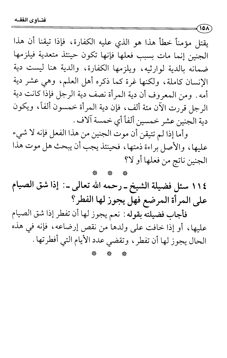 يقتل مؤمناً خطأ هذا هو الذي عليه الكفارة، فإذا تيقنا أن هذا الجنين إنما مات بسبب فعلها فإنها تكون حينئذ متعدية فيلزمها ضمانه بالدية لوارثيه، ويلزمها الكفارة، والدية هنا ليست دية الإنسان كاملة، ولكنها غرة كما ذكره أهل العلم، وهي عشر دية أمه. ومن المعروف أن دية المرأة نصف دية الرجل فإذا كانت دية الرجل قررت الآن مئة ألف، فإن دية المرأة خمسون ألفاً، ويكون دية الجنين عشر خمسين ألفاً أي خمسة آلاف.
