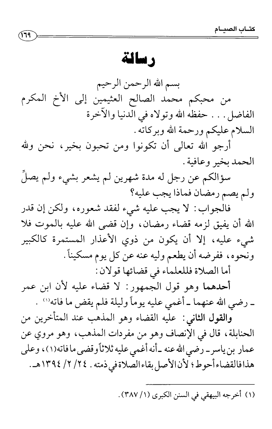 من محبكم محمد الصالح العثيمين إلى الأخ المكرم الفاضل ... حفظه الله وتولاه في الدنيا والآخرة