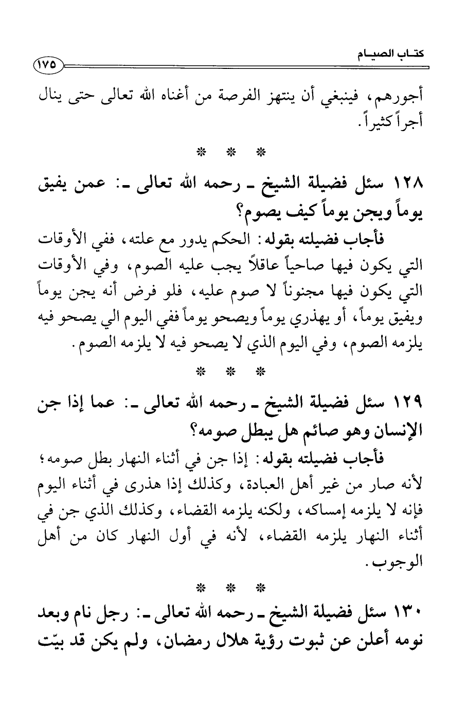 سئل فضيلة الشيخ - رحمه الله تعالى -: عما إذا جن الإنسان وهو صائم هل يبطل صومه؟