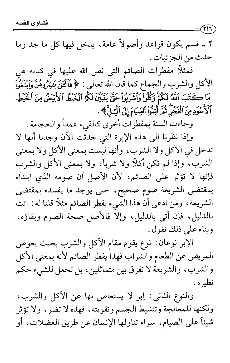 2 قسم يكون قواعد وأصولاً عامة، يدخل فيها كل ما جد وما حدث من الجزئيات.