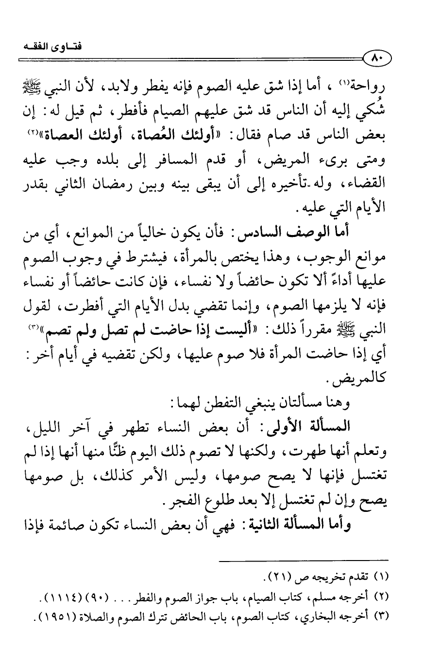 وأما المسألة الثانية: فهي أن بعض النساء تكون صائمة فإذا