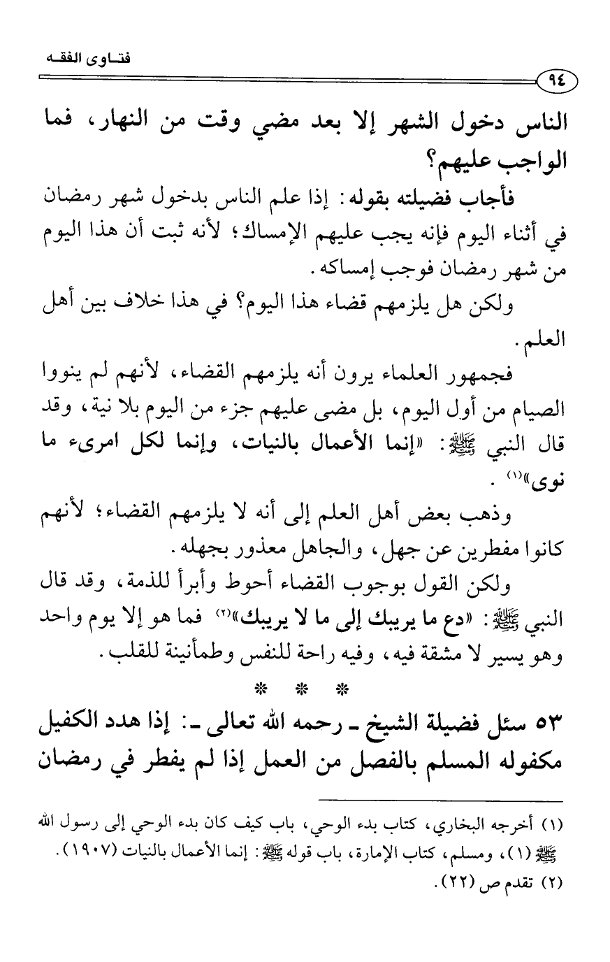 فأجاب فضيلته بقوله: إذا علم الناس بدخول شهر رمضان في أثناء اليوم فإنه يجب عليهم الإمساك؛ لأنه ثبت أن هذا اليوم من شهر رمضان فوجب إمساكه.
