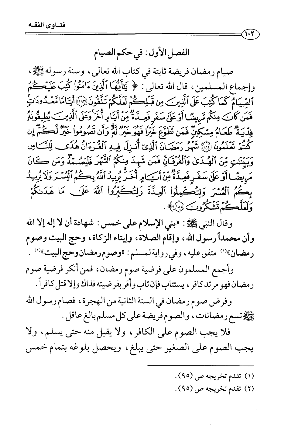 صيام رمضان فريضة ثابتة في كتاب الله تعالى، وسنة رسوله صَلَّى اللَّهُ عَلَيْهِ وَسَلَّمَ، وإجماع المسلمين، قال الله تعالى: {ياأَيُّهَا الَّذِينَءَامَنُواْ كُتِبَ عَلَيْكُمُ الصِّيَامُ كَمَا كُتِبَ عَلَى الَّذِينَ مِن قَبْلِكُمْ لَعَلَّكُمْ تَتَّقُونَ * أَيَّامًا مَّعْدُودَاتٍ فَمَن كَانَ مِنكُم مَّرِيضًا أَوْ عَلَى سَفَرٍ فَعِدَّةٌ مِّنْ أَيَّامٍ أُخَرَ وَعَلَى الَّذِينَ يُطِيقُونَهُ فِدْيَةٌ طَعَامُ مِسْكِينٍ فَمَن تَطَوَّعَ خَيْرًا فَهُوَ خَيْرٌ لَّهُ وَأَن تَصُومُواْ خَيْرٌ لَّكُمْ إِن كُنتُمْ تَعْلَمُونَ * شَهْرُ رَمَضَانَ الَّذِى" أُنزِلَ فِيهِ الْقُرْآنُ هُدًى لِّلنَّاسِ وَبَيِّنَاتٍ مِّنَ الْهُدَى وَالْفُرْقَانِ فَمَن شَهِدَ مِنكُمُ الشَّهْرَ فَلْيَصُمْهُ وَمَن كَانَ مَرِيضًا أَوْ عَلَى سَفَرٍ فَعِدَّةٌ مِّنْ أَيَّامٍ أُخَرَ يُرِيدُ اللهُ بِكُمُ الْيُسْرَ وَلاَ يُرِيدُ بِكُمُ الْعُسْرَ وَلِتُكْمِلُواْ الْعِدَّةَ وَلِتُكَبِّرُواْ اللهَ عَلَى مَا هَدَاكُمْ وَلَعَلَّكُمْ تَشْكُرُونَ} .