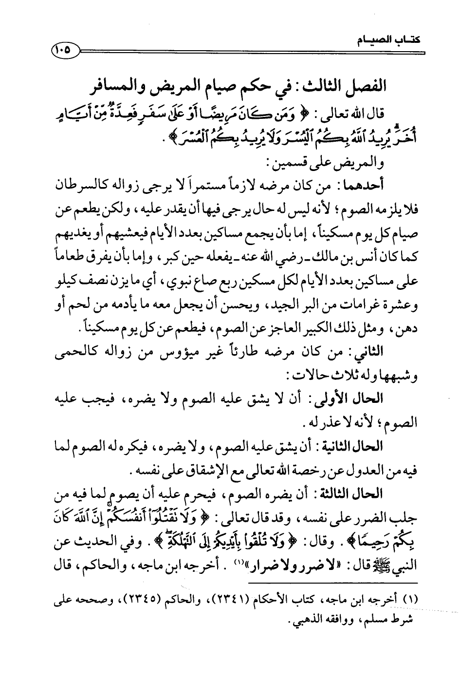 الفصل الثالث: في حكم صيام المريض والمسافر