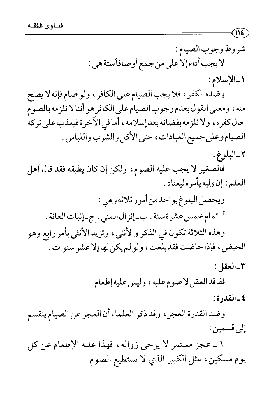شروط وجوب الصيام: