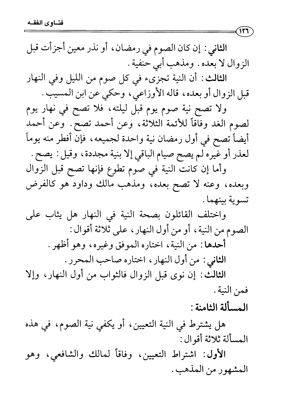 هل يشترط في النية التعيين، أو يكفي نية الصوم، في هذه المسألة ثلاثة أقوال: