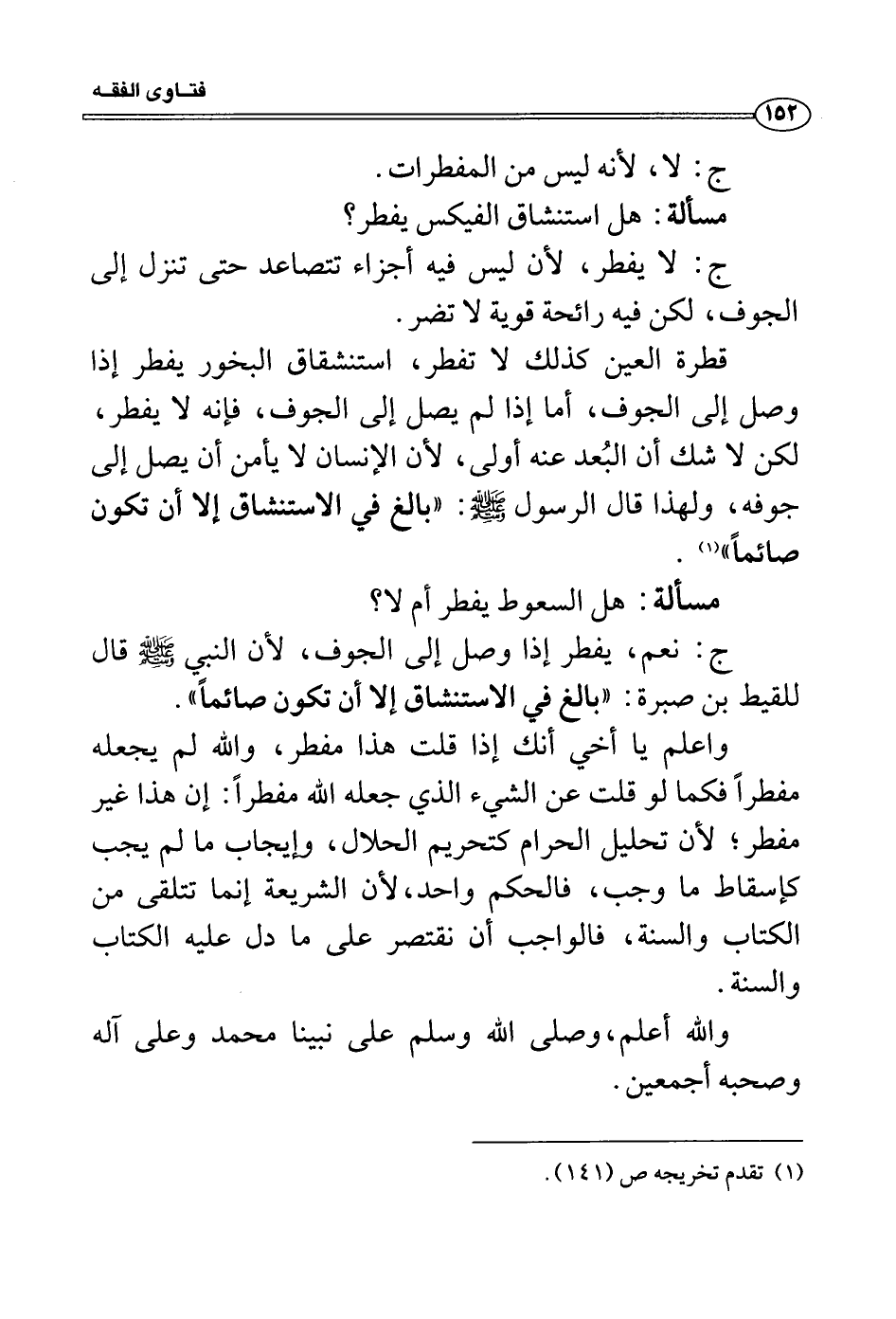 مسألة: هل السعوط يفطر أم لا؟