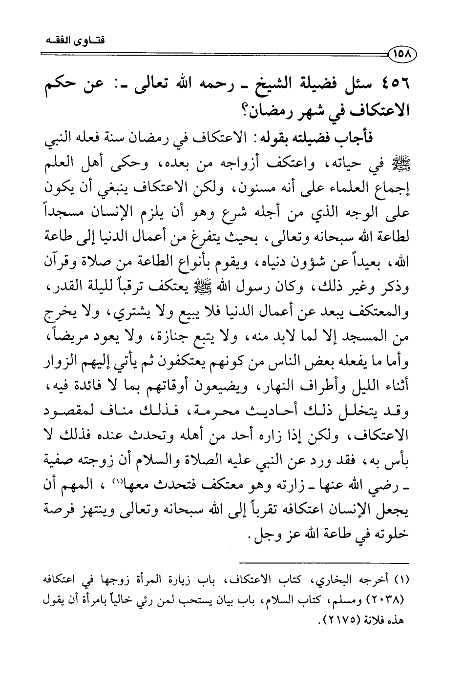 سئل فضيلة الشيخ - رحمه الله تعالى -: عن حكم الاعتكاف في شهر رمضان؟
