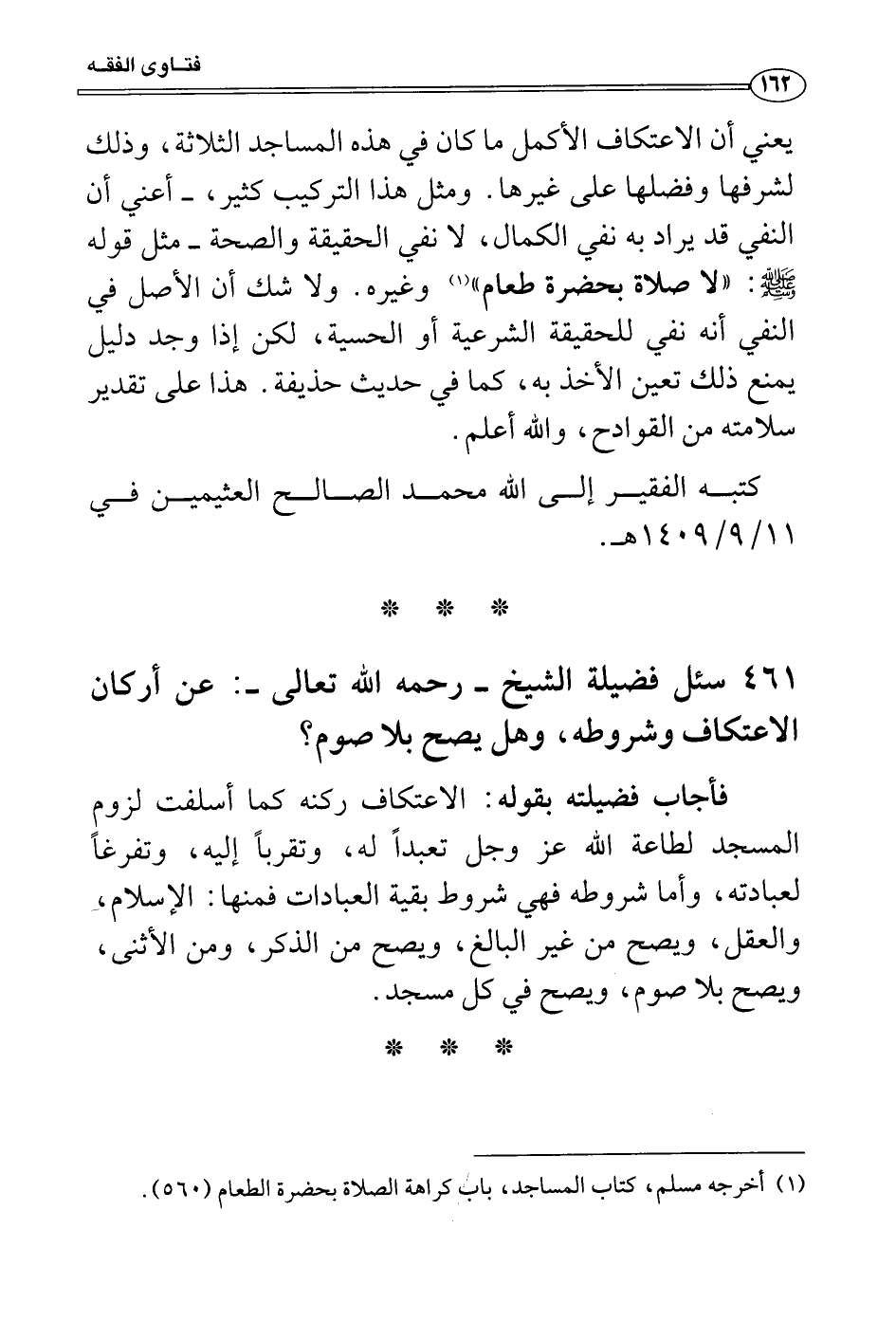 كتبه الفقير إلى الله محمد الصالح العثيمين في 11/9/ 1409 هـ.