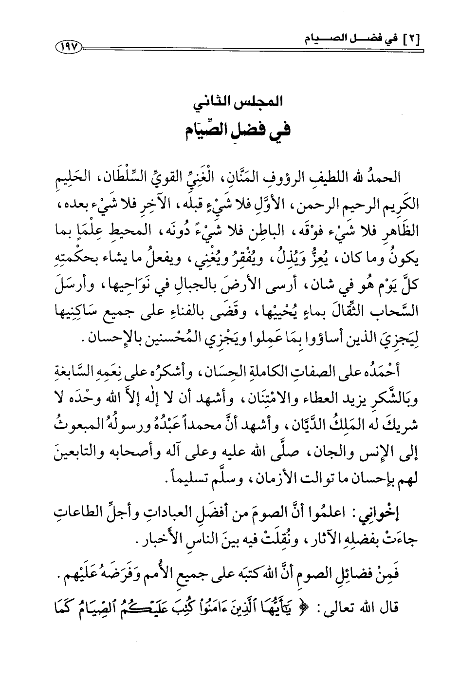 إخواني: اعلموا أن الصوم من أفضل العبادات وأَجَلِّ الطاعات , جاءت بفضله الآثار , ونقلت فيه بين الناس الأخبار.