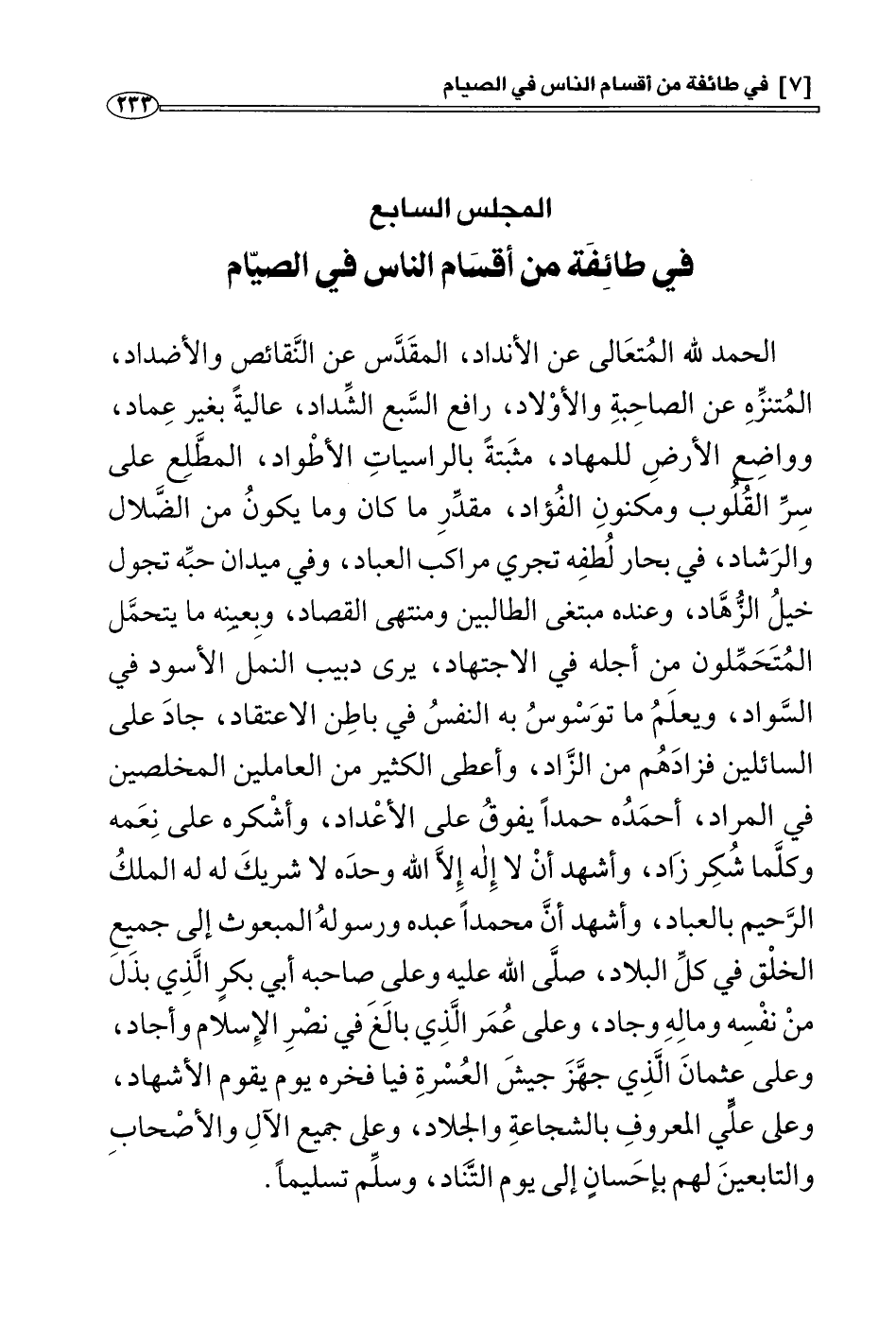 المجلس السابع: في طائفة من أقسام الناس في الصيام