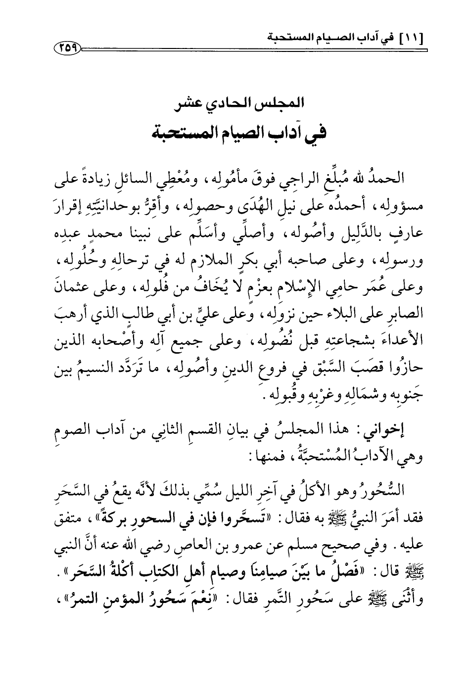 المجلس الحادي عشر: في آداب الصيام المستَحَبَّة