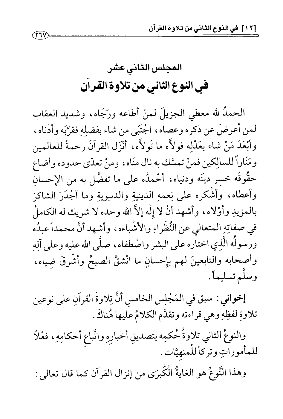 المجلس الثاني عشر: في النوع الثاني من تلاوة القرآن