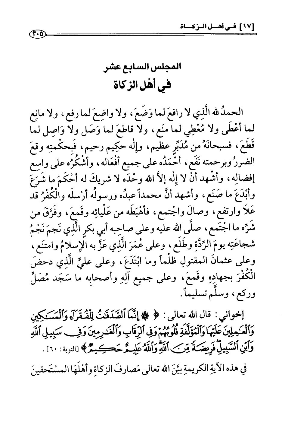المجلس السابع عشر: في أهل الزكاة