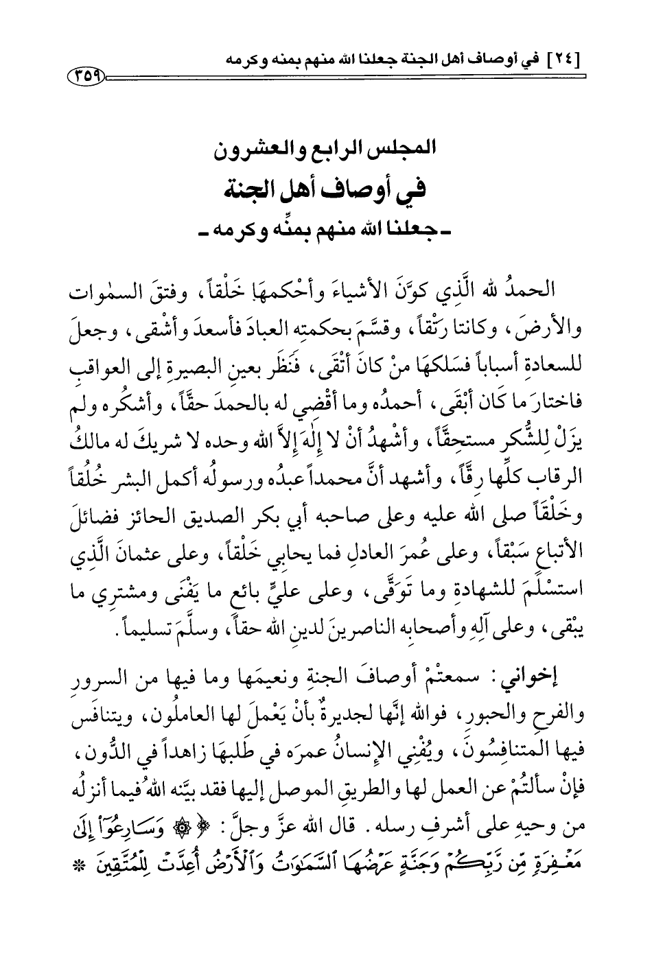 المجلس الرابع والعشرون: في أوصاف أهل الجنة جعلنا الله منهم بمنه وكرمه