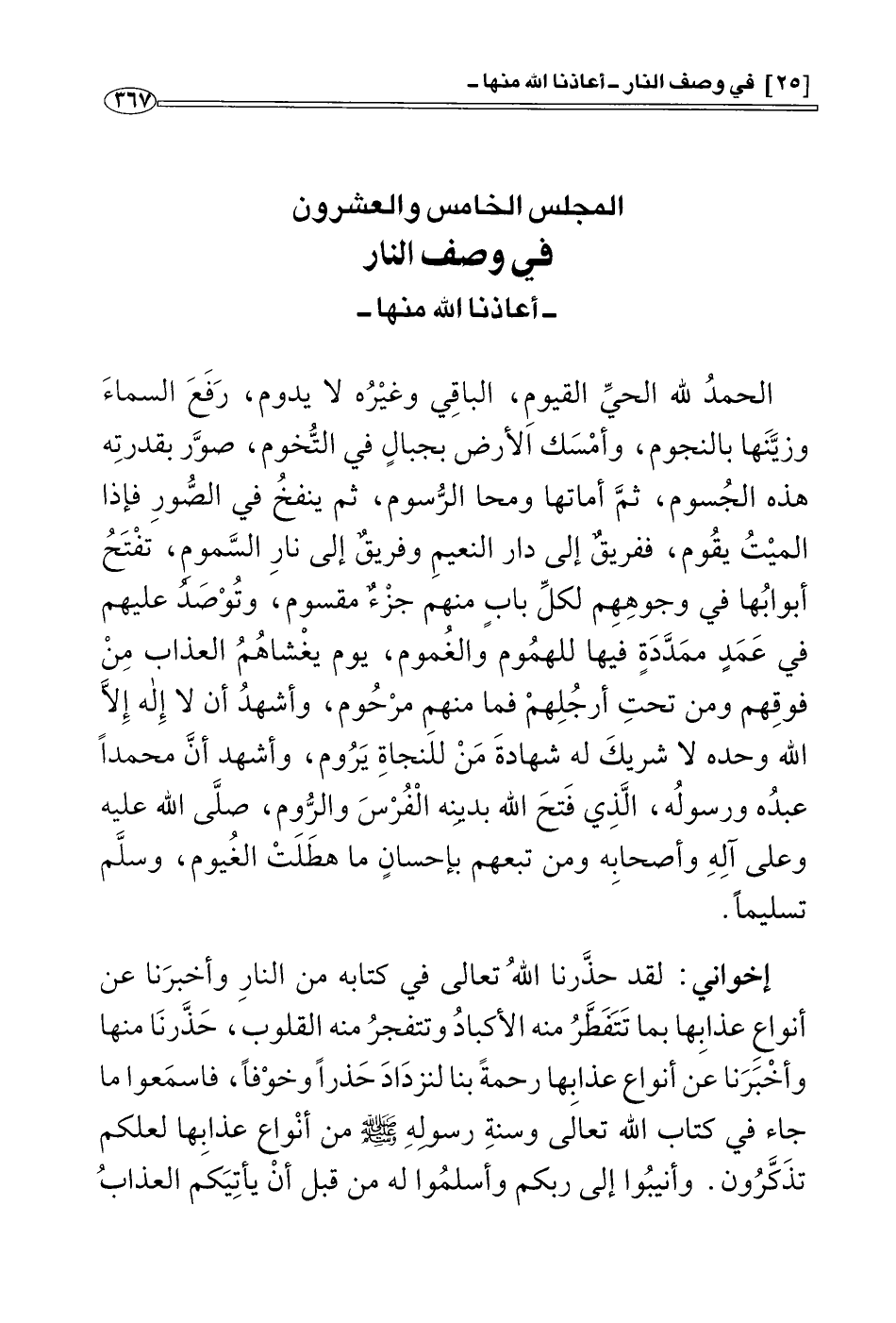 المجلس الخامس والعشرون: في وصف النار أعاذنا الله منها