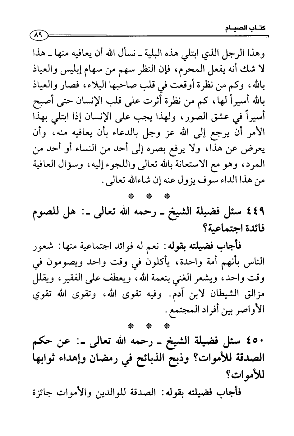 سئل فضيلة الشيخ - رحمه الله تعالى -: هل للصوم فائدة اجتماعية؟