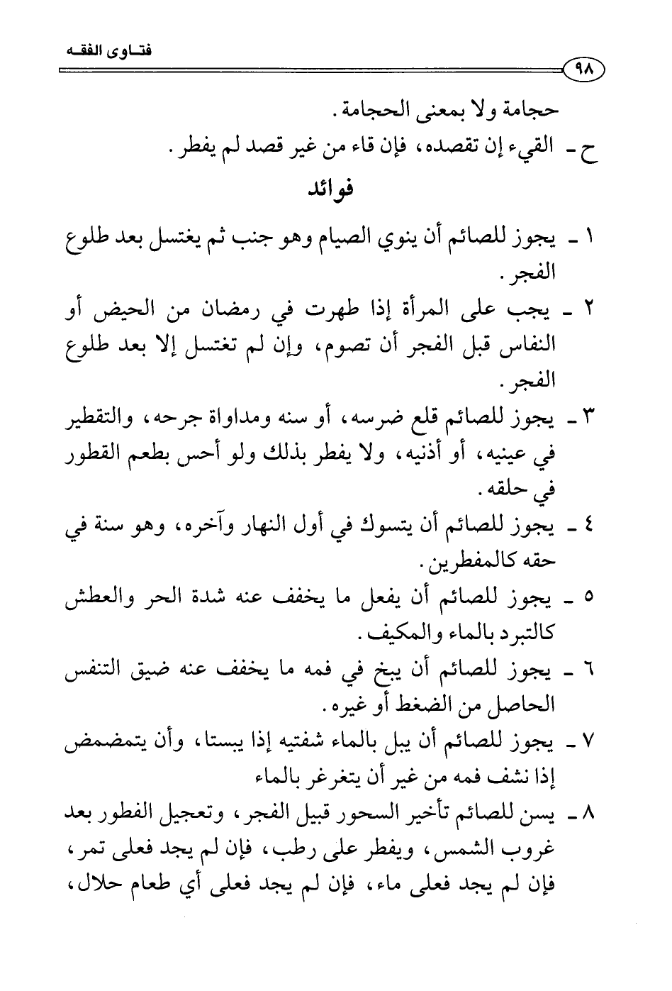 1 يجوز للصائم أن ينوي الصيام وهو جنب ثم يغتسل بعد طلوع الفجر.