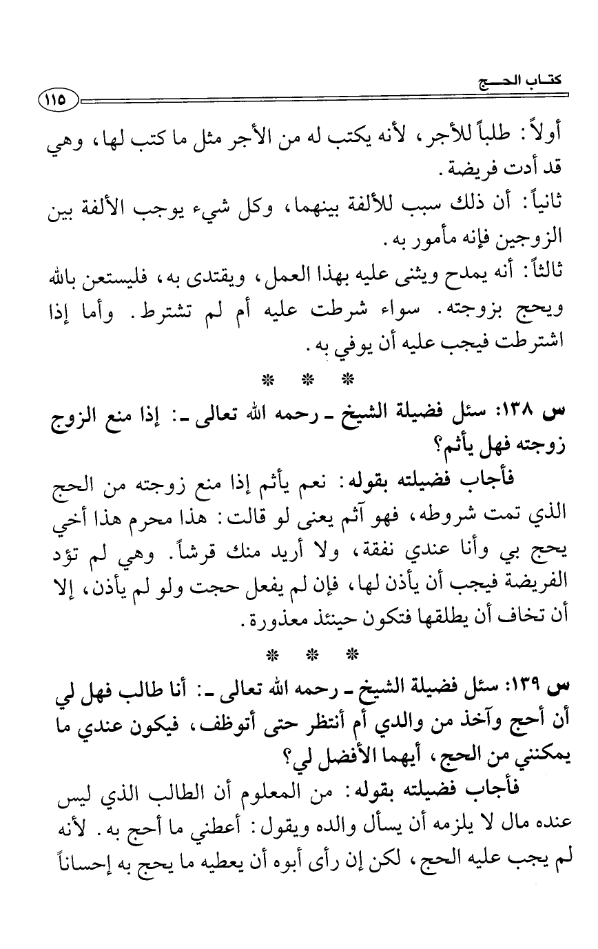 س 138: سئل فضيلة الشيخ- رحمه الله تعالى-: إذا منع الزوج زوجته فهل يأثم؟