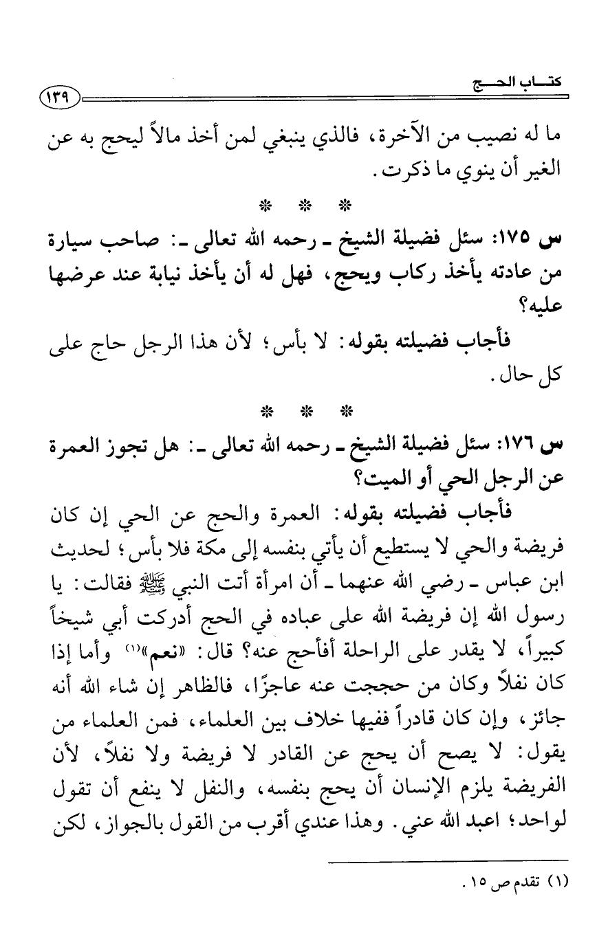 س 176: سئل فضيلة الشيخ- رحمه الله تعالى-: هل تجوز العمرة عن الرجل الحي أو الميت؟