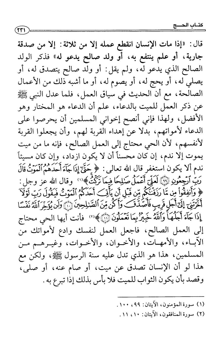(1) سورة المؤمنون، الآيتان: 99، 155.
