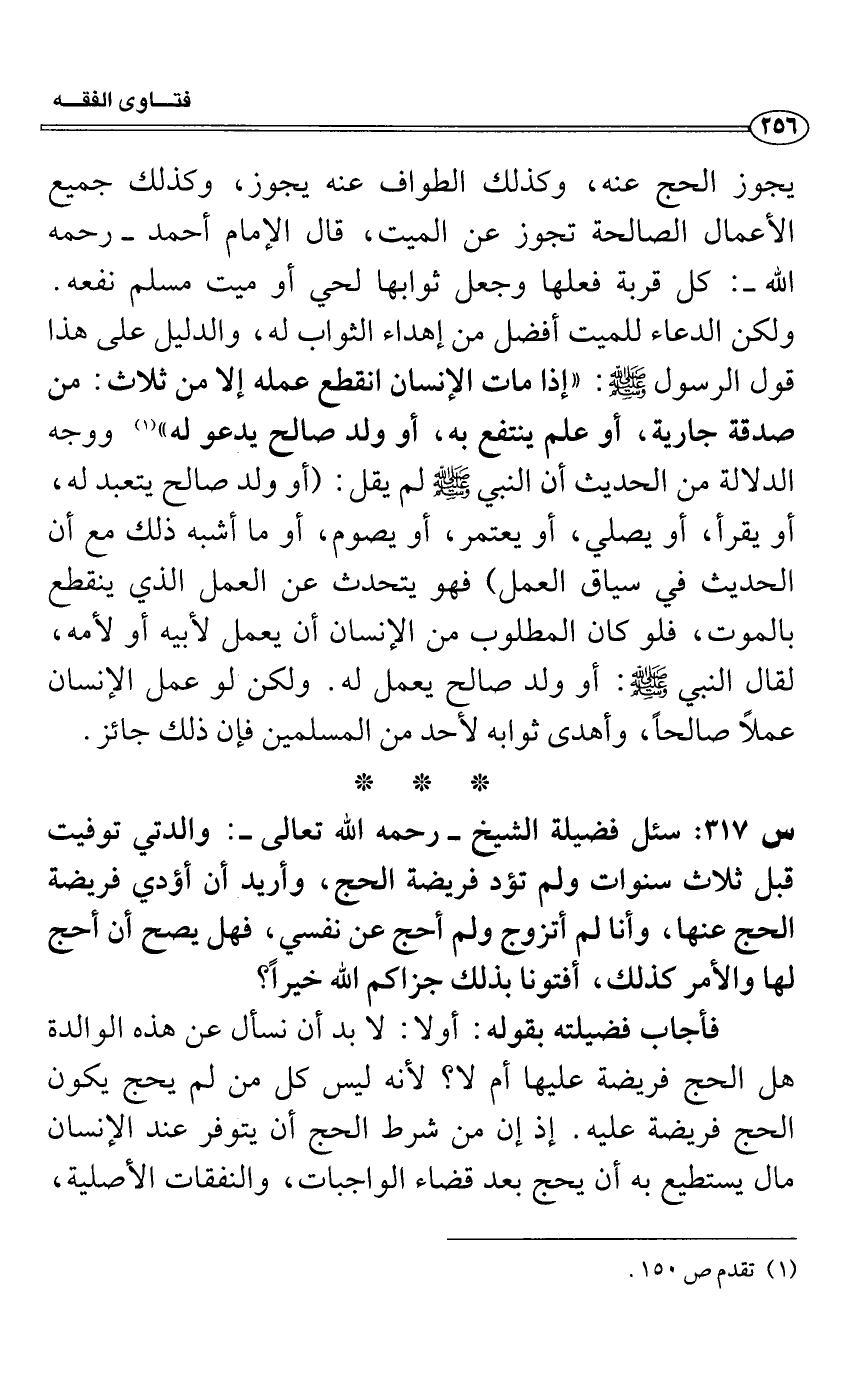 س 317: سئل فضيلة الشيخ- رحمه الله تعالى-: والدتي توفيت قبل ثلاث سنوات ولم تؤد فريضة الحج، وأريد أن أؤدي فريضة الحج عنها، وأنا لم أتزوج ولم أحج عن نفسي، فهل يصح أن أحج