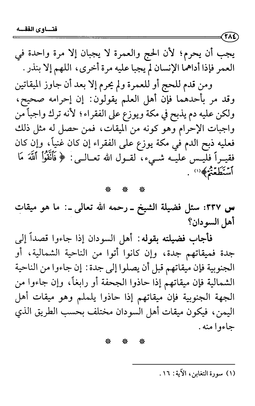 س 337: سئل فضيلة الشيخ- رحمه الله تعالى-: ما هو ميقات أهل السودان؟